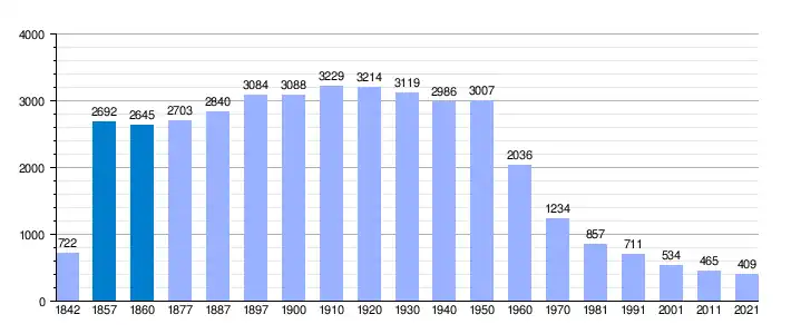 | Gráfica de evolución demográfica de Merindad de Sotoscueva[6] entre 1842 y 2021 |