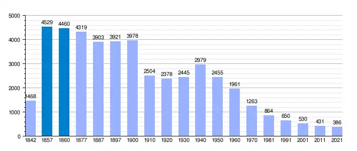 | Gráfica de evolución demográfica de Merindad de Valdivielso[7] entre 1842 y 2021 |