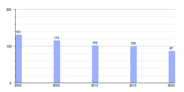 | Gráfica de evolución demográfica de Merlán (aldea) entre 2000 y 2020 |