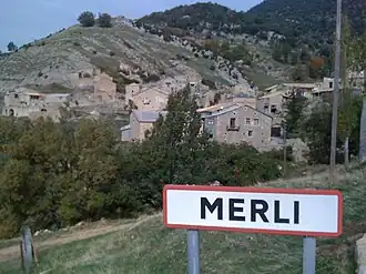 Merli (Merlli en aragonés ribagorzano[2]) es un pueblo del municipio de Isábena, en la Ribagorza, provincia de Huesca (Aragón, España). Está situada a 1250 metros de altitud en la cabecera del valle de Bacamorta,[3] al pie de la sierra de Chordal (1553 m), en torno a la iglesia parroquial de San Antonio de Padua que conserva el portalón románico de dovelas en arco de medio punto.