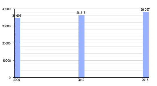 Los datos demográficos contemplados en este gráfico de la comuna de Mermelada[5][6][7] son estimaciones que se han cogido de 2009 a 2015 de la página del Instituto Haitiano de Estadística e Informática (IHSI).