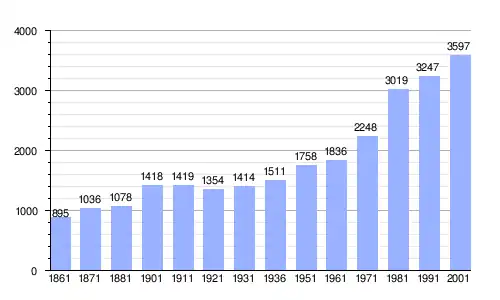 | Gráfica de evolución demográfica de Merone entre 1861 y 2001 |