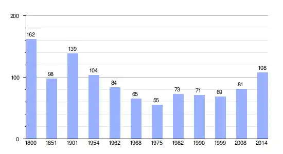 Los datos demográficos contemplados en este gráfico de la comuna de Merval[4] se han cogido de 1800 a 1999 de la página francesa EHESS/Cassini, y los demás datos de la página del INSEE.[5]
