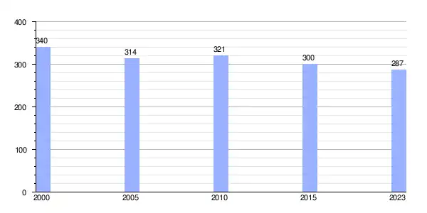 | Gráfica de evolución demográfica de Mesón de Calvos entre 2000 y 2023 |
