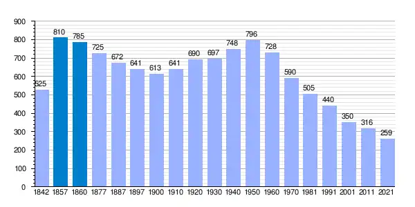 | Gráfica de evolución demográfica de Mesones de Isuela[5] entre 1842 y 2021 |