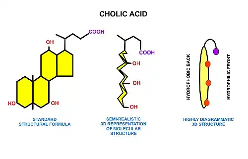 - ↑ Hofmann AF (1963). «The function of bile salts in fat absorption. The solvent properties of dilute micellar solutions of conjugated bile salts». Biochem. J. 89: 57-68. PMC 1202272. PMID 14097367.