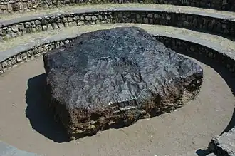 Está compuesto de hierro en un 84% y alrededor de 16% de níquel, con algunos indicios de cobalto. Hay incrustaciones de hidróxido de hierro en algunas partes de la superficie. En términos científicos, el meteorito se clasifica como una ataxita (meteorito de hierro con altas cantidades de níquel)