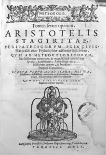 - ↑ A copy of Meteorologicorum libri quatuor, edited by Joachim Périon with corrections by Nicolas de Grouchy (Paris, 1571) exists in the Morgan Library (New York), the Cambridge University Library, the Bibliotheek Universiteit Leiden and the Tom Slick rare book collections of the Southwest Research Institute library (San Antonio, Texas), and other libraries.