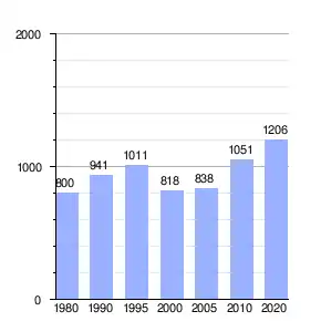 En 2020 registro una población de 1206 personas, lo que corresponde al 5.23 % de la población municipal.[15] De los cuales 591 son hombres y 615 son mujeres.[15] Tiene 308 viviendas particulares habitadas.[15]