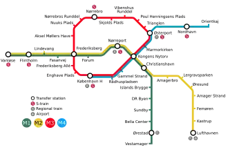 El Metro de Copenhague (en danés: Københavns Metro) es un sistema de ferrocarril metropolitano que da servicio a la ciudad de Copenhague, capital de Dinamarca, y a su área metropolitana. Forma parte del sistema de transporte público de la ciudad y se extiende hasta la cercana Frederiksberg. El sistema, que se abrió en 2002, recorre la ciudad de norte a sur y enlaza con las estaciones del S-Tog del centro en Nørreport. Tiene una longitud bastante reducida, aunque se está trabajando intensamente en su ampliación y, por ejemplo, ya es posible llegar en metro al aeropuerto de Kastrup.[3]