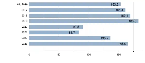 | 2024 | 338 | 54 | 114 | 54 | 113 | [nota 3] 3 | |||