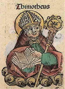 Éfeso, cuyas ruinas se encuentran hoy cerca de la ciudad de Selçuk, fue la sede de una antigua comunidad cristiana cuyos orígenes se remontan a la predicación del apóstol Pablo (Hechos de los Apóstoles 19.1-10), quien habría visitado la ciudad circa 53. Pablo emprendió su tercer viaje misionero en el año 54 y pasó tres meses enseñando en una sinagoga en un esfuerzo por hacer que los judíos aceptaran la unión con los gentiles en el cristianismo, pero sin éxito. Durante los siguientes dos años permaneció en Éfeso buscando convertir a judíos y gentiles helenizados, y parece haber hecho muchos conversos. Según lo que informa la Primera epístola a Timoteo (1,3), tomada de Eusebio de Cesarea en su Historia eclesiástica, el primer obispo de la ciudad fue san Timoteo, discípulo de Pablo y constituido por él responsable de la comunidad cristiana efesia. En las Epístolas paulinas también se incluye la Epístola a los efesios, atribuida por tradición a Pablo, pero probablemente el trabajo de un discípulo o autor cristiano posterior. Según los menólogos griegos, san Cayo sucedió a Timoteo, identificado con el Cayo de Derbe mencionado en los Hechos de los Apóstoles (20.4).