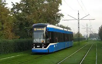 El Tranvía de Cracovia (en polaco: Tramwaje w Krakowie) es un sistema de trenes ligeros que opera en la ciudad de Cracovia, Polonia. Se inició en el año 1882. Actualmente hay 25 líneas ordinarias y 2 complementarias, con una longitud total de 85,5 kilómetros,[2] incluyendo un aumento de 1,4 kilómetros (0,87 millas) de un nuevo túnel, con dos paradas de metro.[3]