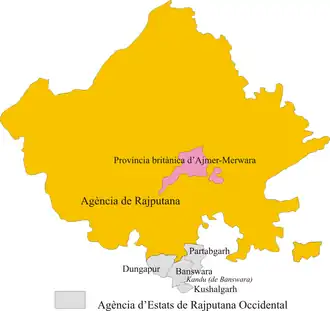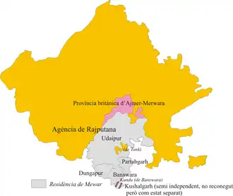 La principal ciudad era Udaipur. Las otras ciudades eran Bhilwara, Nathwara y Chitor.