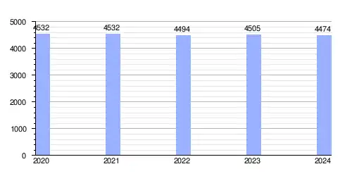 Hasta 2024 la población era de 4474 habitantes,[2] con una densidad de población de 55,63 hab/km².[2]