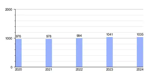 Hasta 2024 la población era de 1035 habitantes,[2] con una densidad de población de 48,18 hab/km².[2]
