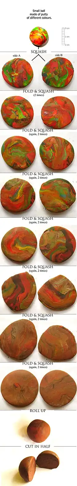 Las definiciones matemáticas de la mezcla están destinadas a capturar la noción de mezcla física. Un ejemplo canónico es el Cuba libre: supongamos que un vaso inicialmente contiene 20% de ron (el conjunto A) y 80% de cola (el conjunto B) en regiones separadas. Después de agitar el vaso, cualquier región del vaso contiene aproximadamente 20% de ron. Además, la mezcla agitada es, en cierto sentido, inseparable: no importa dónde se mire, o cuán pequeña sea la región que se mire, se encontrará 80% de cola y 20% de ron.