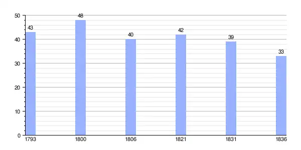 | Gráfica de evolución demográfica de Mezières entre 1793 y 1836 |