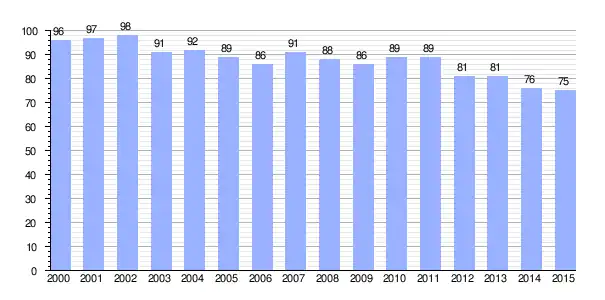 | Gráfica de evolución demográfica de Mezquíriz entre 2000 y 2015 |