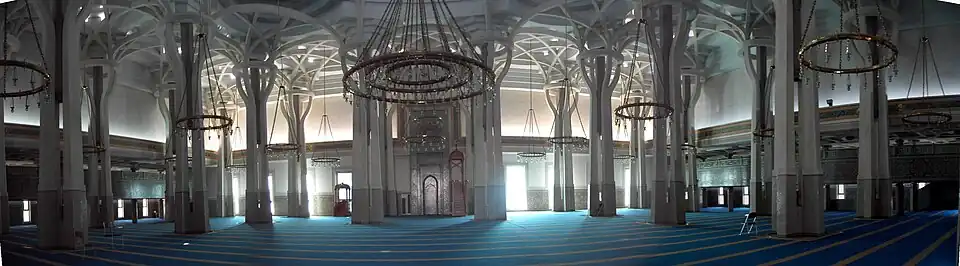 Se sitúa sobre 30 000 m² de terreno y puede albergar hasta 12 000 fieles. En los días de las principales festividades, como la Fiesta del Sacrificio, recibe una afluencia de unos 3.000 – 4.000 fieles. La mezquita ofrece, además de un punto de agregación y de referencia en campo religioso, también servicios culturales y sociales conectados de diferente manera a la fe islámica, como celebración de matrimonios, asistencia para funerales, exégesis, conferencias y mucho más. Es obra del arquitecto Paolo Portoghesi.