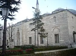 La mezquita fue construida en una terraza con vistas a la Cisterna de Aspar, el mayor de los tres depósitos romanos en Constantinopla. El gran patio (avlu) tiene un pórtico con una columnada de varios tipos de mármol y granito. La mezquita tiene paneles de azulejos coloreados que fueron decorados usando la técnica de la cuerda seca. Son similares a los paneles de la luneta sobre las ventanas a ambos lados de la chimenea en la Sala de la Circuncisión (Sünnet Odası) del Palacio de Topkapı y casi con certeza fueron hechos por el mismo grupo de artesanos iraníes que trabajaban para la corte otomana.[2][3] La mezquita está flanqueada por minaretes gemelos.