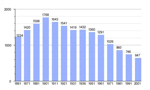 | Gráfica de evolución demográfica de Mezzana Mortigliengo entre 1861 y 2001 |