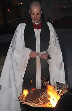 Como parte del reavivamiento litúrgico impulsado por el movimiento ecuménico, se fomentó esta práctica en las iglesias protestantes,[74] incluida la Methodist.[77][78] También lo han adoptado las iglesias anabaptistas y reformadas y algunas denominaciones denominaciones menos litúrgicas.[79]