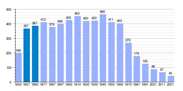 | Gráfica de evolución demográfica de Miño de San Esteban[5] entre 1842 y 2021 |