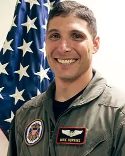 Michael Scott Hopkins (Lebanon, Misuri; 28 de diciembre de 1968) es un aviador y astronauta estadounidense, coronel en la Fuerza Espacial de los Estados Unidos, y actualmente un astronauta de la NASA.[1] Hopkins fue seleccionado en junio de 2009 como un miembro del NASA Astronaut Group 20. Fue Ingeniero de vuelo en la misión Soyuz TMA-10M/Expedición 37/Expedición 38, lanzada el 25 de septiembre de 2013. Es el primer miembro de su clase en ir al espacio.[2] Michael fue también la primera persona en llevar la Eucaristía al espacio exterior en 2013 luego de obtener permiso de su párroco y de la agencia espacial; gracias a esto él pudo comulgar al menos una vez a la semana durante su estadía en la Estación Espacial Internacional.