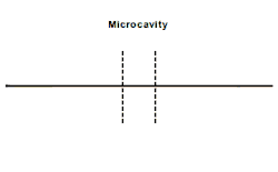 Para un microcavidad que admite un modo único o unos pocos modos de onda estacionaria, el espesor de la capa espaciadora determina el así llamado "modo de cavidad", el cual es la única longitud de onda que puede ser transmitida y que se formará como onda estacionaria dentro del resonador. Dependiendo del tipo y calidad de los espejos, se formará la llamada "banda de parada" en el espectro de transmisión de la microcavidad, un rango amplio de longitudes de onda, que se reflejan y una sola se transmite (usualmente en el centro). Hay diferentes formas de fabricar microcavidades de onda estacionaria, ya sea evaporando capas alternas de medios dieléctricos para formar los espejos (DBR) y el medio dentro de la capa espaciadora, o por modificación del material semiconductor, o por espejos de metal.