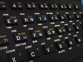 - Teclado QWERTY de 40 teclas de goma en 4 filas como el del Spectrum, con Space y ⇧ Mayús un poco más grandes. Además de las alfanuméricas, hay NEW LINE, SHIF y SPACE. Cada tecla soporta hasta 5 funciones diferentes. En todos los casos, mecanismo de membrana, susceptible de desgaste por los juegos