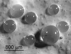 - Esta obra contiene una traducción derivada de «Microspherulite» de Wikipedia en inglés, publicada por sus editores bajo la Licencia de documentación libre de GNU y la Licencia Creative Commons Atribución-CompartirIgual 4.0 Internacional.