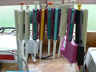 La micropipeta es un instrumento de laboratorio empleado para succionar y transferir pequeños volúmenes de líquidos y permitir su manejo en las distintas técnicas analíticas.[1][2]