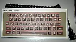 - Periféricos teclado de tamaño completo de 55 teclas, unidad de disco flotante, impresoras térmica y de matriz de puntos, Joystick