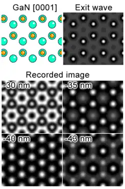que corresponde a 6.1 nm−1 en el CM300. Contribuciones con una frecuencia espacial más alta que la resolución del punto puede ser filtrada con una abertura adecuada que conduce a las imágenes fácilmente interpretables a costa de una gran cantidad de información perdida.