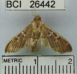 - ↑ Nuss, M. (2003–2017). «GlobIZ search». Global Information System on Pyraloidea. Consultado el 20 de marzo de 2019.