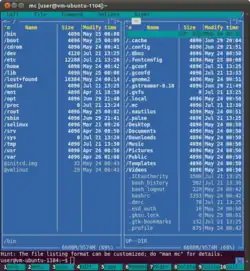 [1] Midnight Commander (mc) es un gestor de ficheros ortodoxo para sistemas tipo Unix (también existe para la plataforma Windows) y es un clon del Norton Commander.