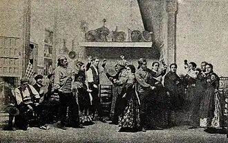 La obra, escrita por el dramaturgo José Feliu y Codina, fue estrenado el 8 de enero de 1895 en el Teatro de la Comedia de Madrid, con un elenco de actores que incluía a Carmen Cobeña, Emilio Thuillier, Emilio Mario, Miguel Cepillo, Francisco García Ortega y Sofía Alverá.[1] La trama de la obra, dividida en tres actos, está ambientada en la comarca de La Alcarria.[1]