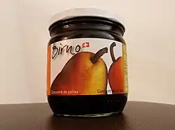 La miel de pera, también llamada col de pera en Renania, o sirope de pera, jarabe de pera, o concentrado de pera, es un jugo de fruta espeso, opaco, de color marrón a negro-marrón hecho de peras (a veces también se usan manzanas para esto) que se produce principalmente en Suiza central (fabricado en los cantones de Vaud , Fribourg, Neuchâtel y Jura) y en Alemania.