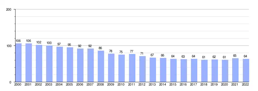 | Gráfica de evolución demográfica de Mier entre 2000 y 2022 |