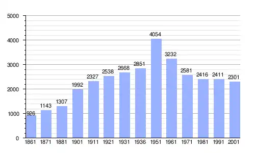| Gráfica de evolución demográfica de Migliaro entre 1861 y 2001 |