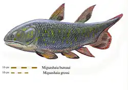 Miguashaia es un género extinto de peces sarcopterigios prehistóricos de la familia Miguashaiidae. Este género marino fue descrito científicamente por Schultze en 1973.[1]