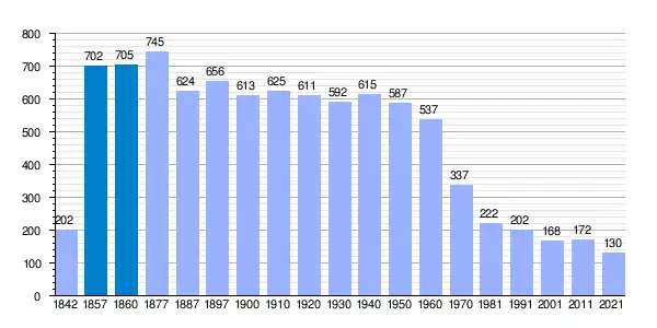 | Gráfica de evolución demográfica de Migueláñez[1] entre 1842 y 2021 |