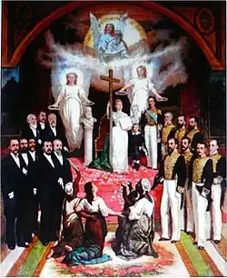 - ↑ El cuadro Santa Catalina transportada por los ángeles al cielo, se encuentra en la Universidad de Barcelona (España). La línea, suavemente modulada, recuerda algunas de las obras iniciales de Federico de Madrazo, su maestro, y, en particular, conexiones con los purismos románticos de los nazarenos. El poético ambiente, los convencionalismos propios de la tendencia, la simplicidad del esquema compositivo, le hacen ser un interesante ejemplo de una orientación que no abunda en la pintura española de mediados del siglo XIX.