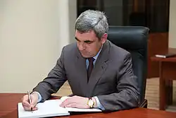 - ↑ «Вице-президент Михаил Логуа намерен оставить свой пост». Apsnypress. 25 de diciembre de 2013. Archivado desde el original el 26 de diciembre de 2013. Consultado el 8 de junio de 2014.