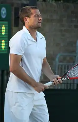 ![]() Mijaíl Yelguin jugando en Wimbledon 2014 | ||