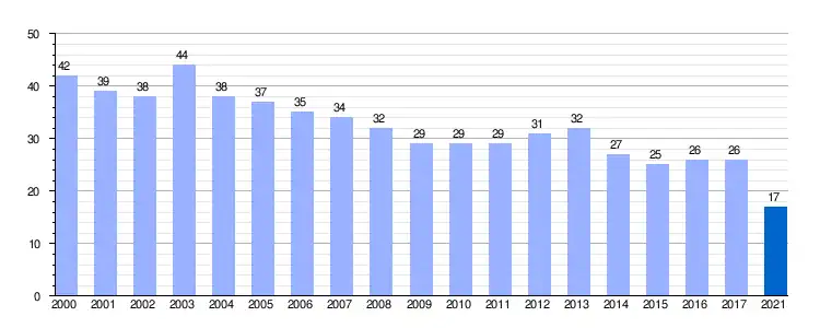 | Gráfica de evolución demográfica de Mijangos entre 2000 y 2021 |