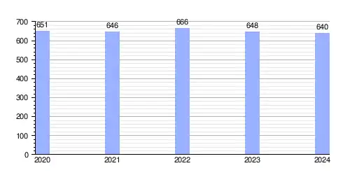 Hasta 2024 la población era de 640 habitantes,[2] con una densidad de población de 44,41 hab/km².[2]