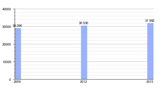 | Gráfica de evolución demográfica de Milot entre 2009 y 2015 |