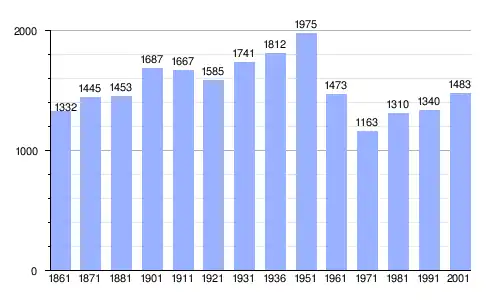 | Gráfica de evolución demográfica de Milzano entre 1861 y 2001 |